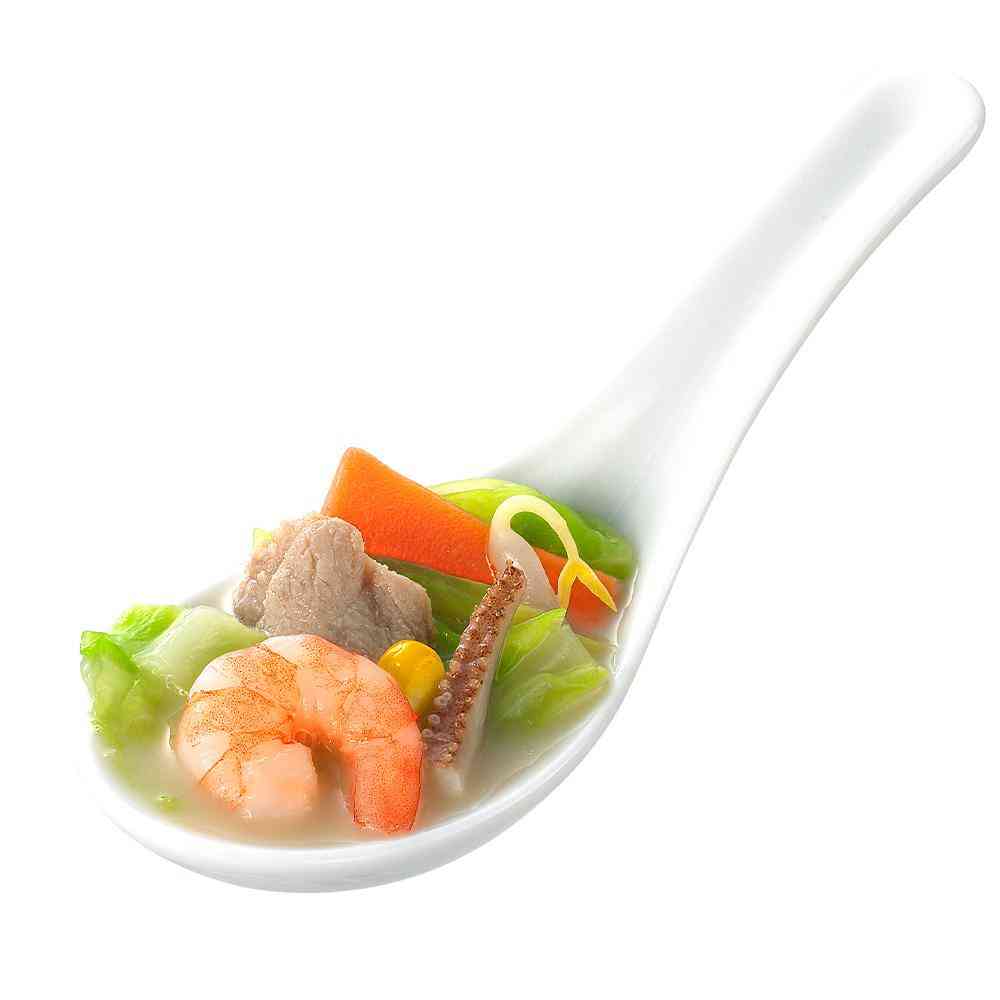 キャベツ、にんじん、もやし、コーン、ねぎ、きぬさや、いか、えび、豚肉、かまぼこ、さつま揚げ、きくらげの12種類のたっぷりの具材入りです。