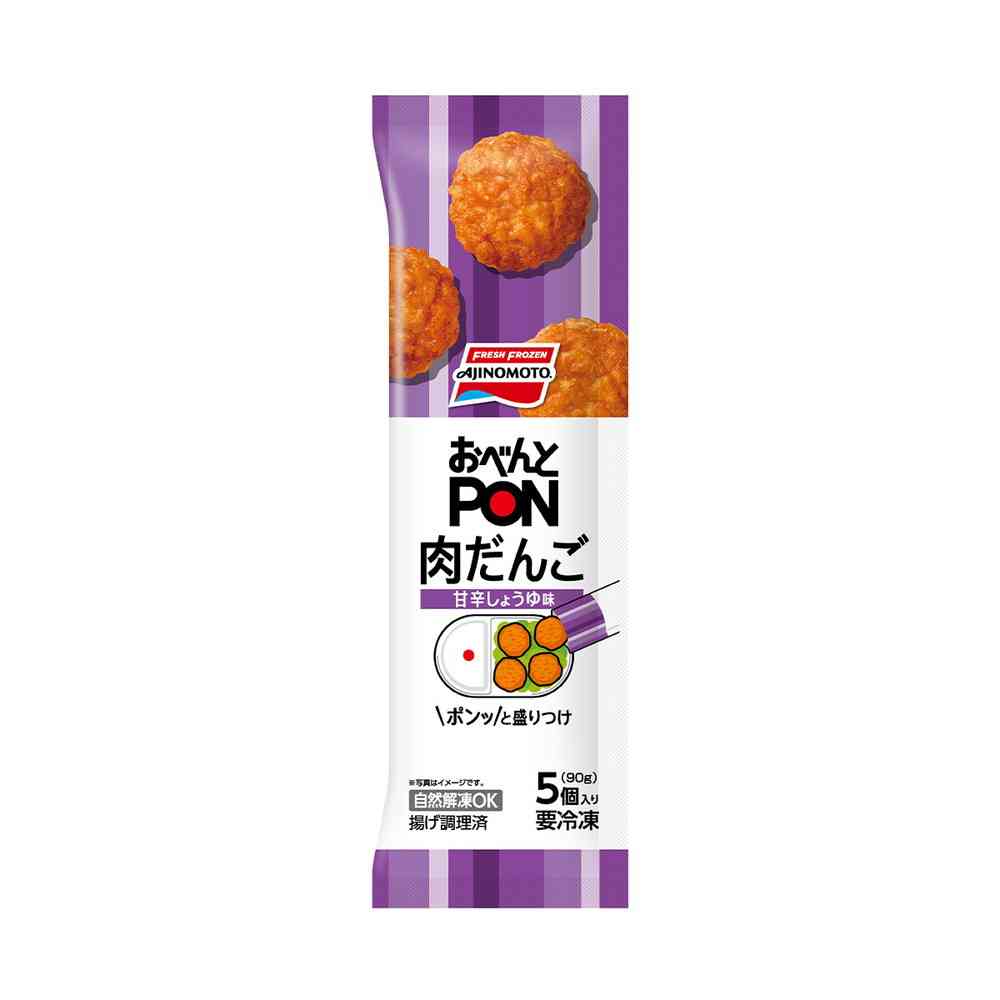 細挽きと粗挽きのひき肉を使用した甘辛しょうゆ味の肉だんごです。