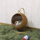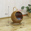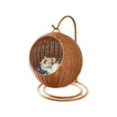 ●ネコちゃんの癒しの空間を与えるペット用ハンギングチェアー。●リゾート感たっぷり!ピンク系のクッション付きでネコちゃんもゆらゆらのんびり、ひなたぼっこ。●籠部分は、人口ラタンなのでお手入れも楽々。●籠部分をフレームに引っ掛けるだけの楽々設置。●入口径:32cm。●カラー:ブラウン色。
