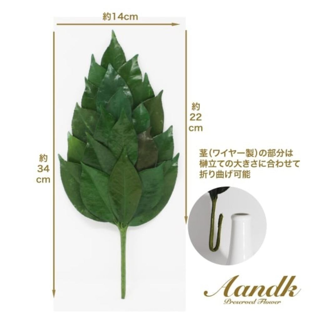 ブリザーブド加工とは?天然のお花や葉に無害な薬品・着色料で特殊加工し、生葉と変わらない外観を保ちながら、長期間の保存を可能にした加工技術です。当製品は国内加工ですので、外国産にありがちな、枯れる、葉が丸まる、しおれるということがほとんどなく、適した環境に保管できれば3年以上美しい状態を保てます。