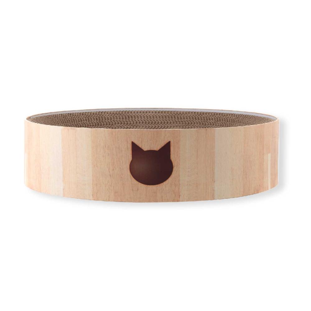 つめとぎ兼ベッド部分はダンボール製。重なりあった薄いダンボールが、土台に沿ってきれいなすり鉢状を作ります。猫のやわらかいからだにフィットするので、猫がリラックスできます。