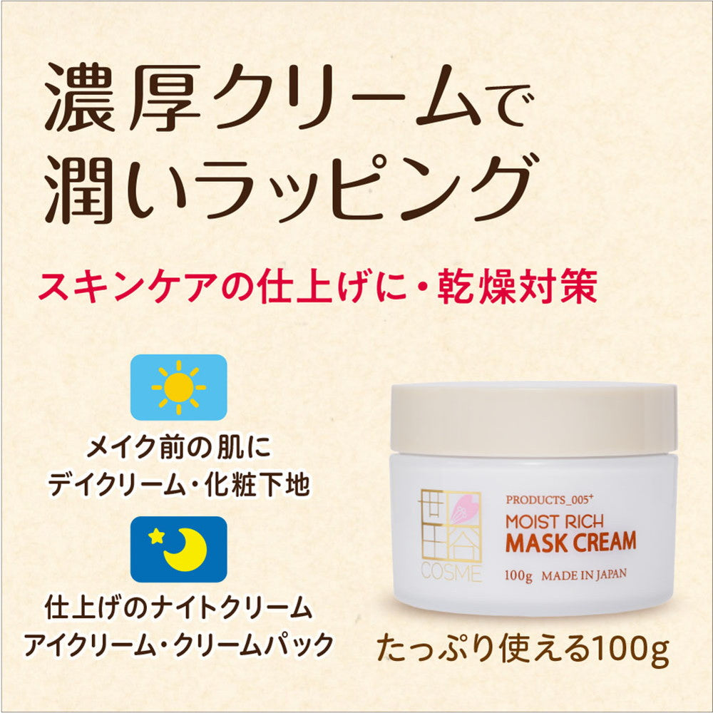 5種の天然由来オイルバター*1と12種の保湿成分*2を配合した濃厚なのにベタつかないマスククリームです。