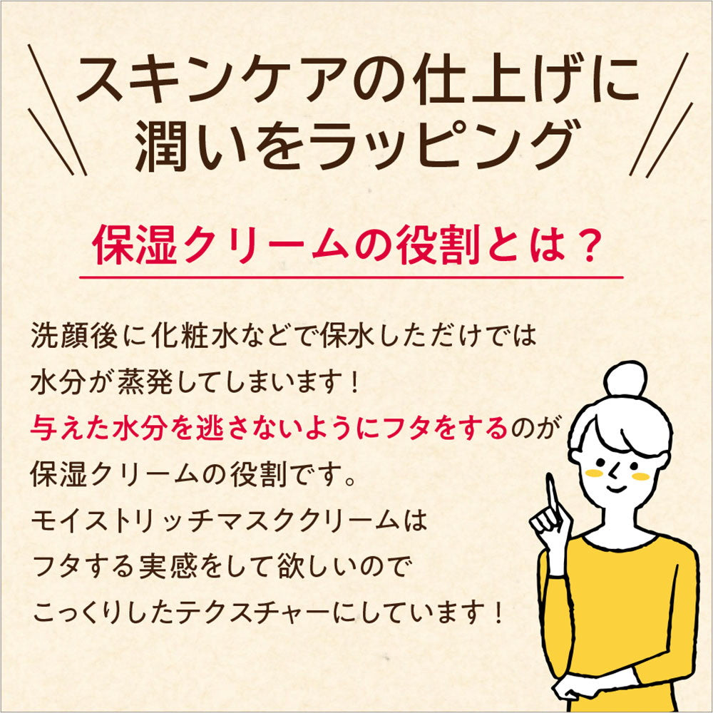 潤いをラッピングケア。朝夜のスキンケアの仕上げに、アイクリームに、厚めに塗ってクリームパックにも使用できます。