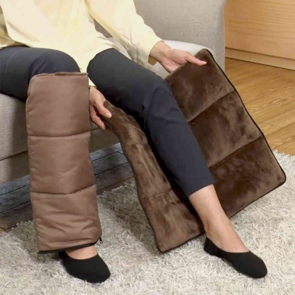 ●熱を逃がさない3層構造と、内側のフリース素材で冷えやすい足元から身体全体までじんわり温めます