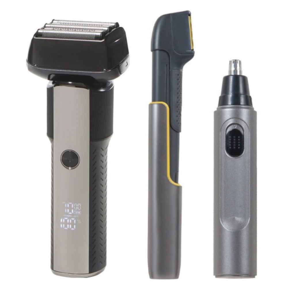 サイズ: サイズ:シェーバー:(約)幅6.2×奥行4.3×高さ16.5cm、チタントリマー:(約)幅4.5×奥行3×高さ21~26.5cm、ノーズトリマー:(約)直径2.5×長さ12.7cm 重さ:シェーバー:(約)220g、チタントリマー:(約)150g、ノーズトリマー:(約)50g(乾電池含まず)