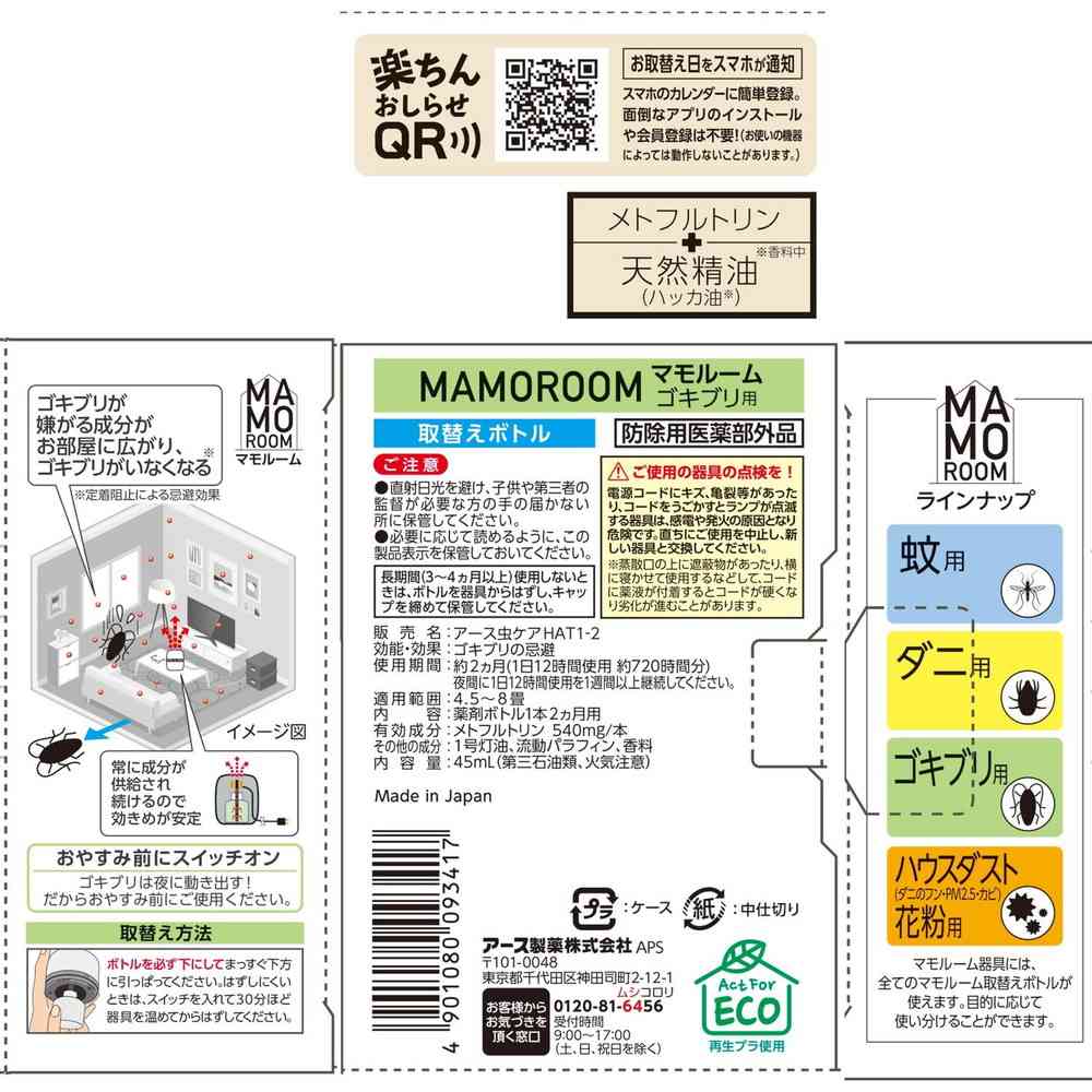 ●ゴキブリが多く確認される場合には、駆除剤を用いた後にマモルームゴキブリ用を使用するとより効果的です。