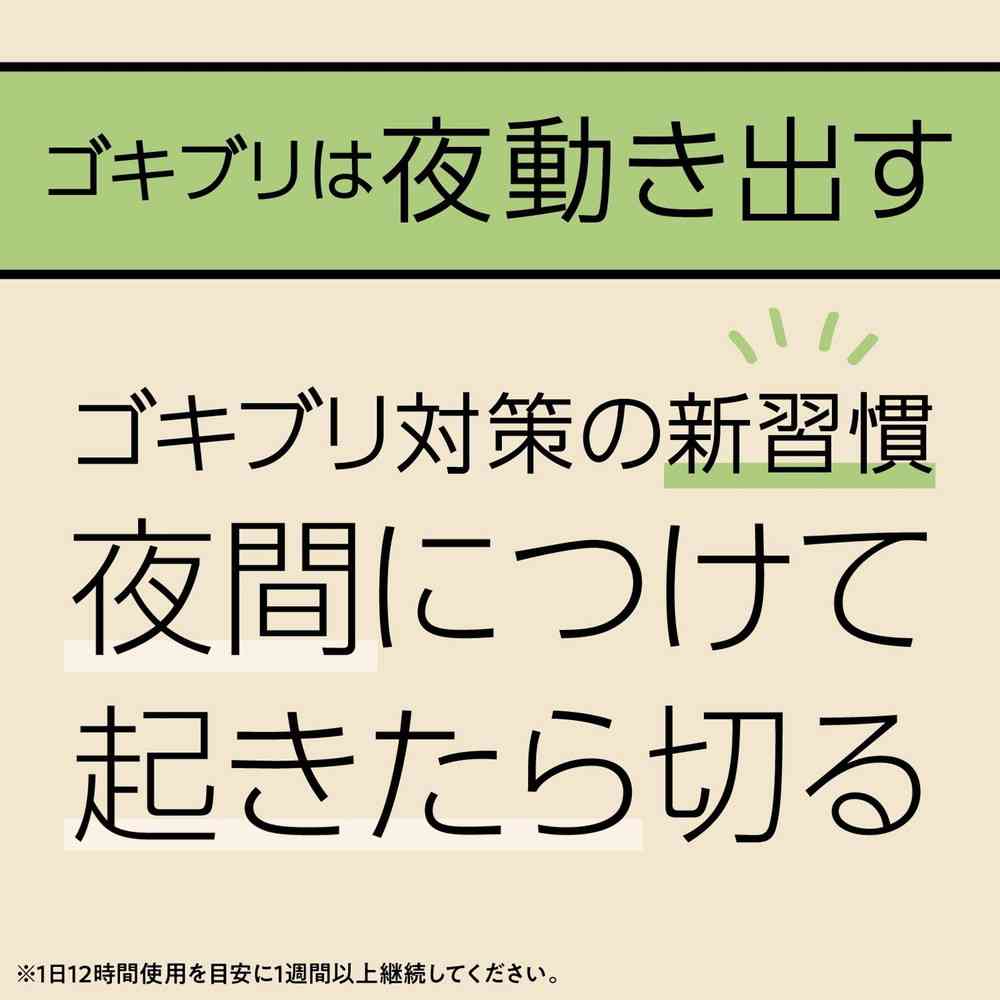 ●ゴキブリ用は、ゴキブリの定着を防ぎ、忌避効果を発揮するためにゴキブリの活動が活発になる夜間に1日12時間通電すること。