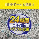 ガッチリ固まる鉱物製の猫砂。消臭・抗菌力がパワーアップ。オシッコやウンチのニオイを瞬間強力消臭。さらに時間とともに発生するアンモニア臭も長時間抑制。オシッコやウンチの嫌なニオイをさわやかな香りに変える独自のハーモナイズド技術採用。猫が大好きなハーブの香りをブレンド、嫌がらずに落ち着いて排泄できます。粉が舞いにくいので、お部屋が清潔に保てます。