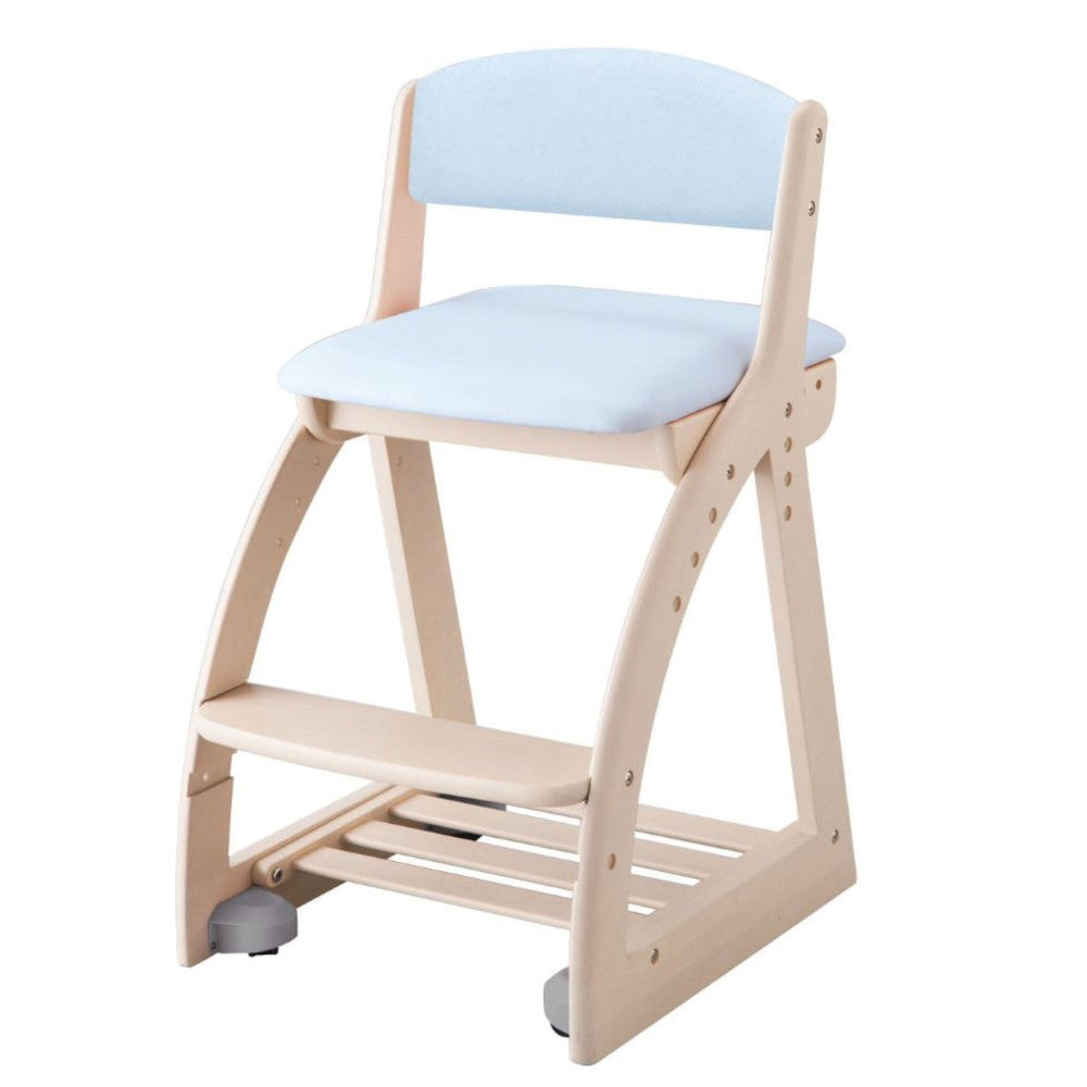4ステップチェア 木製チェア ホワイト木目×ライトブルー PVC メーカー直送 ▼返品・キャンセル不可【他商品との同時購入不可】