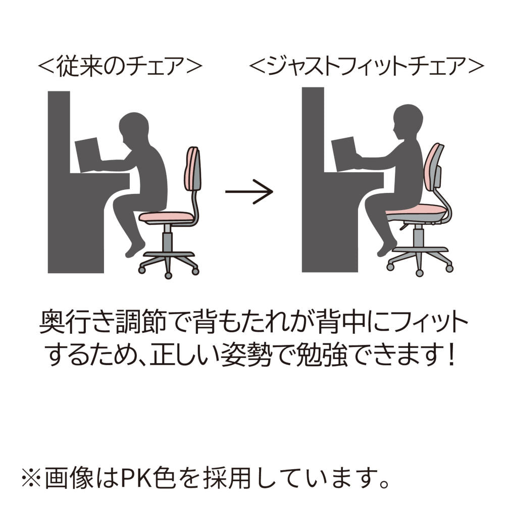 奥行調節で背もたれが背中にフィットするため、正しい姿勢で座ることができる回転チェアです。