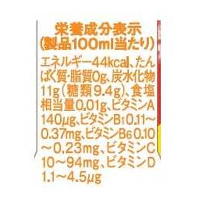 ●オレンジやアセロラなど4種の果実をブレンド。ゴクゴク飲める、さわやかな味わい(果汁21%)。1日不足分のビタミン5種(ビタミンA・B1・B6・C・D)入り。