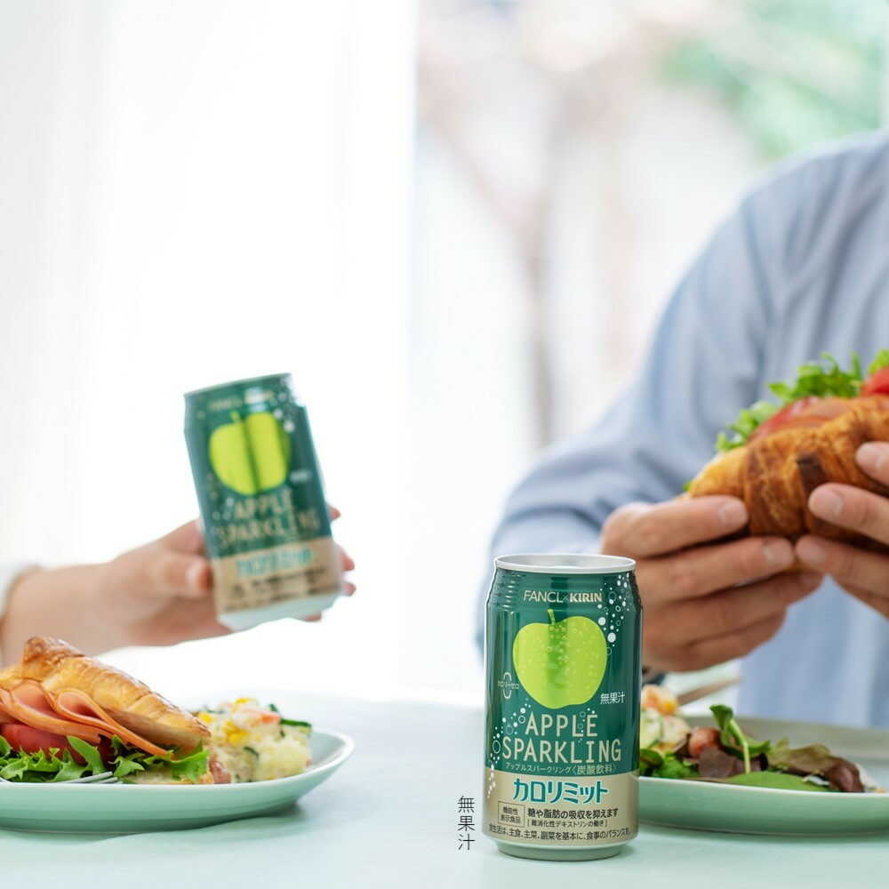●「キリン×ファンケル カロリミット アップルスパークリング」はファンケルのロングセラー食事サポートブランド「カロリミット」とコラボした食事とも一緒に楽しめる炭酸飲料。