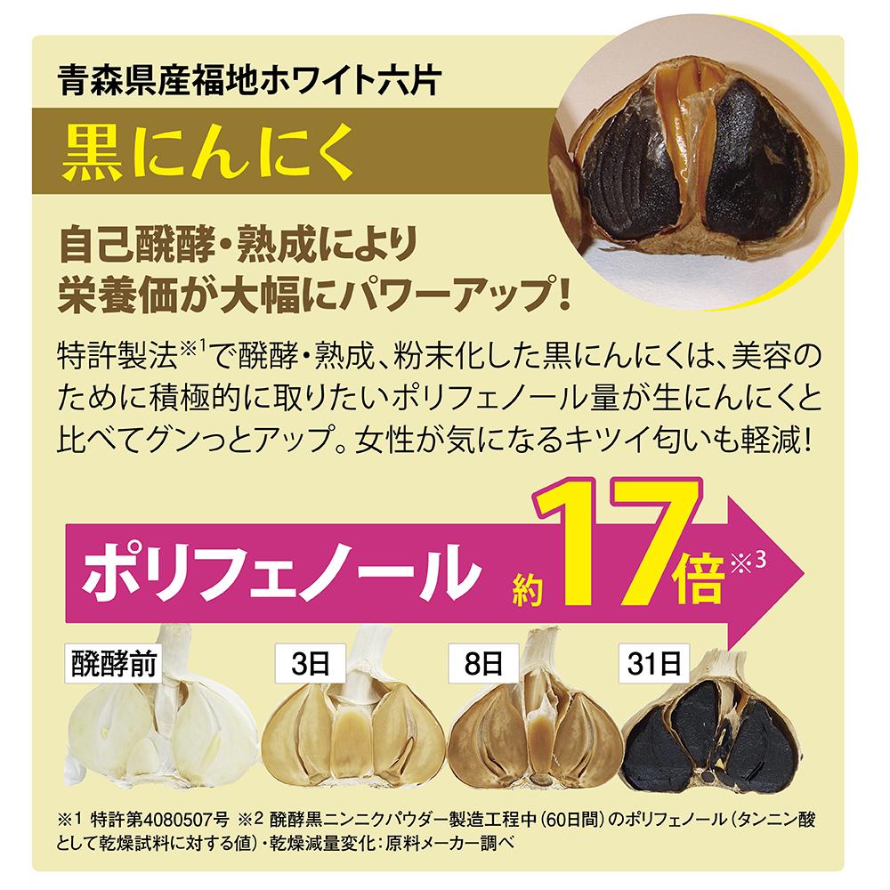 ○徳用90日です。上質にんにくとして知られる青森産福地ホワイト六片を蒸焼き、醗酵熟成することにより中身が黒変したパワーアップ「黒にんにく」となります。