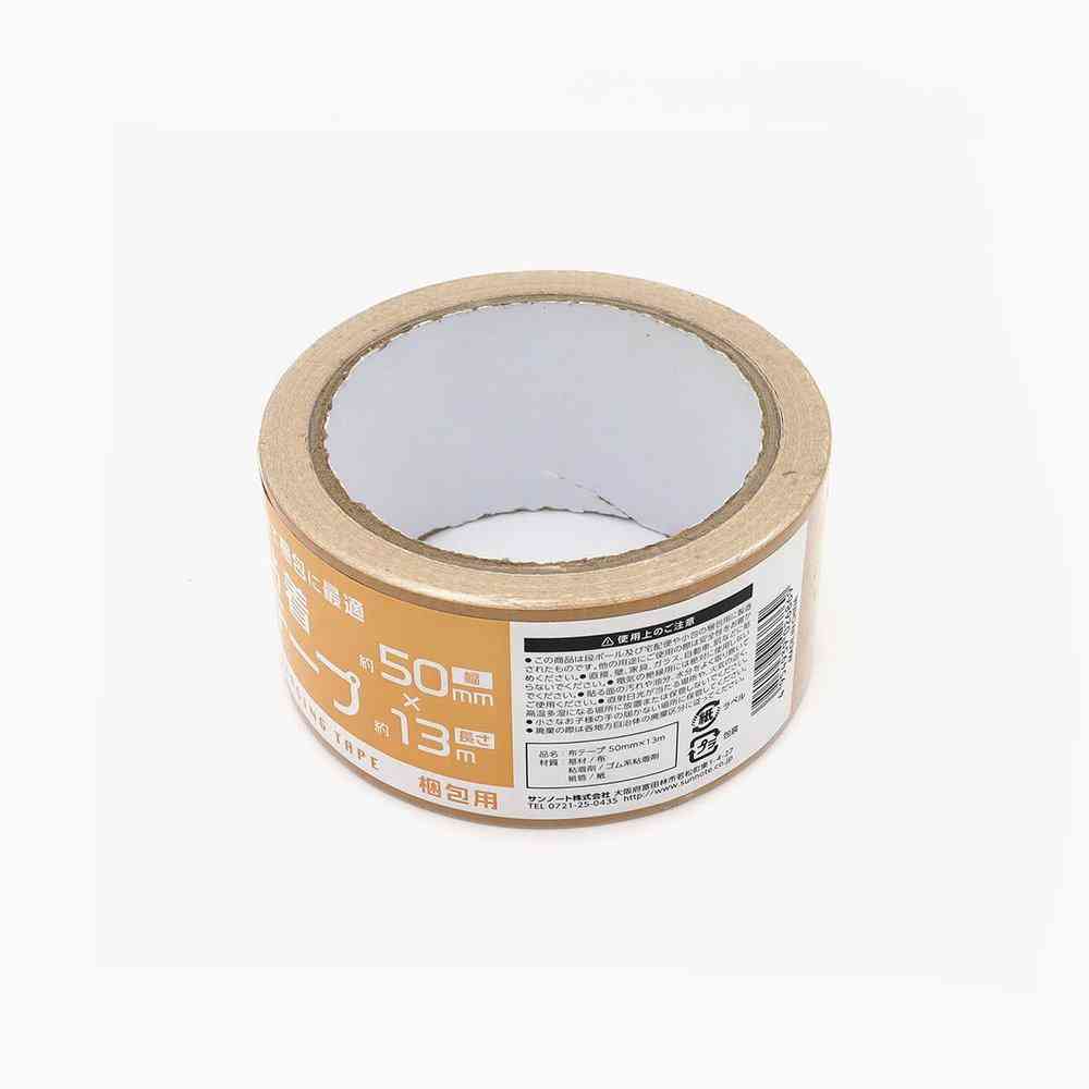 手でカットでき梱包に最適布タイプの粘着テープです。手で切ることができ、重ね貼りもできるので、ダンボールや小包などの梱包に最適です。