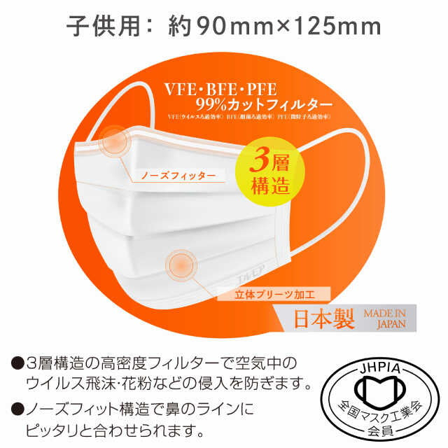 3層構造の高密度フィルターがウイルス飛沫・花粉・ハウスダストなどの侵入をブロック。安心の日本製品・日本品質。