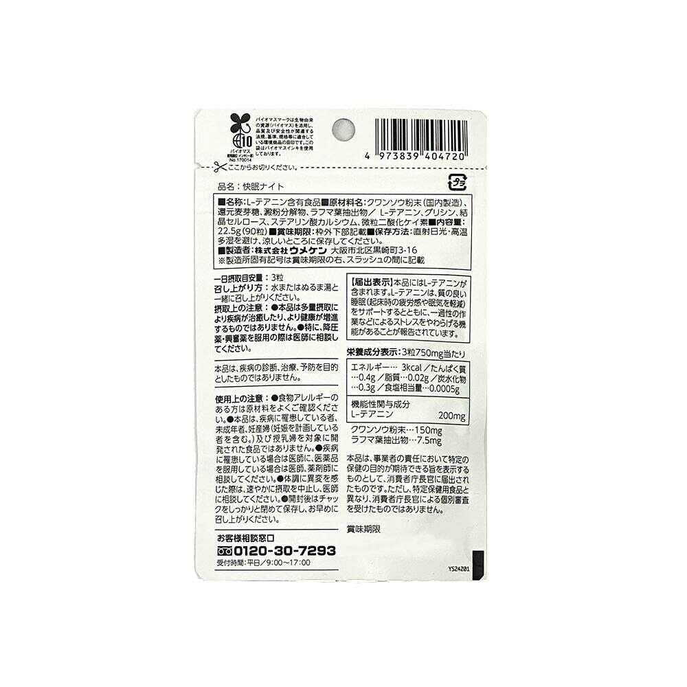 3粒中 (1)Lーテアニン200mg (2)クワンソウ粉末150mg (3)グリシン100mg (4)ラフマ葉抽出物7.5mg