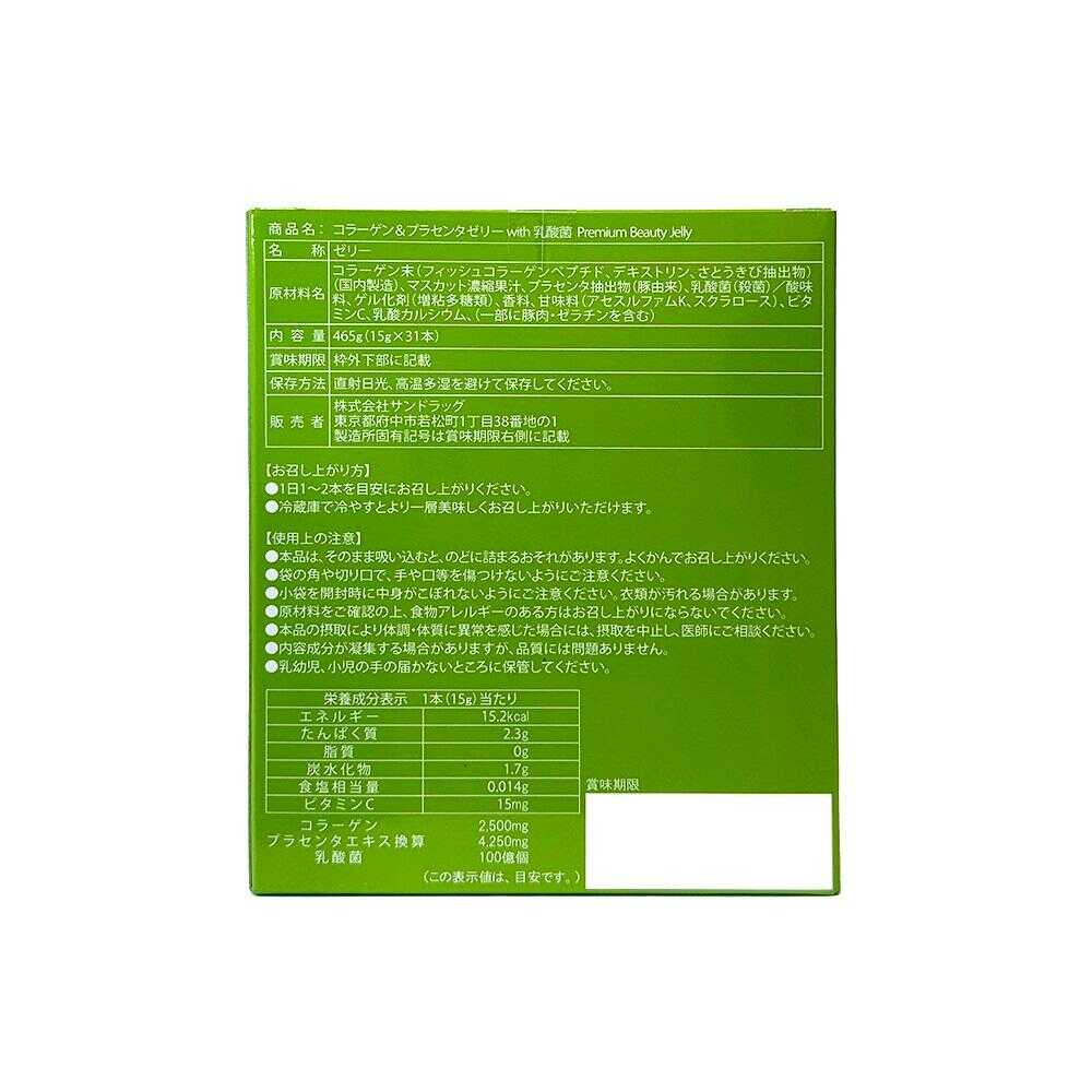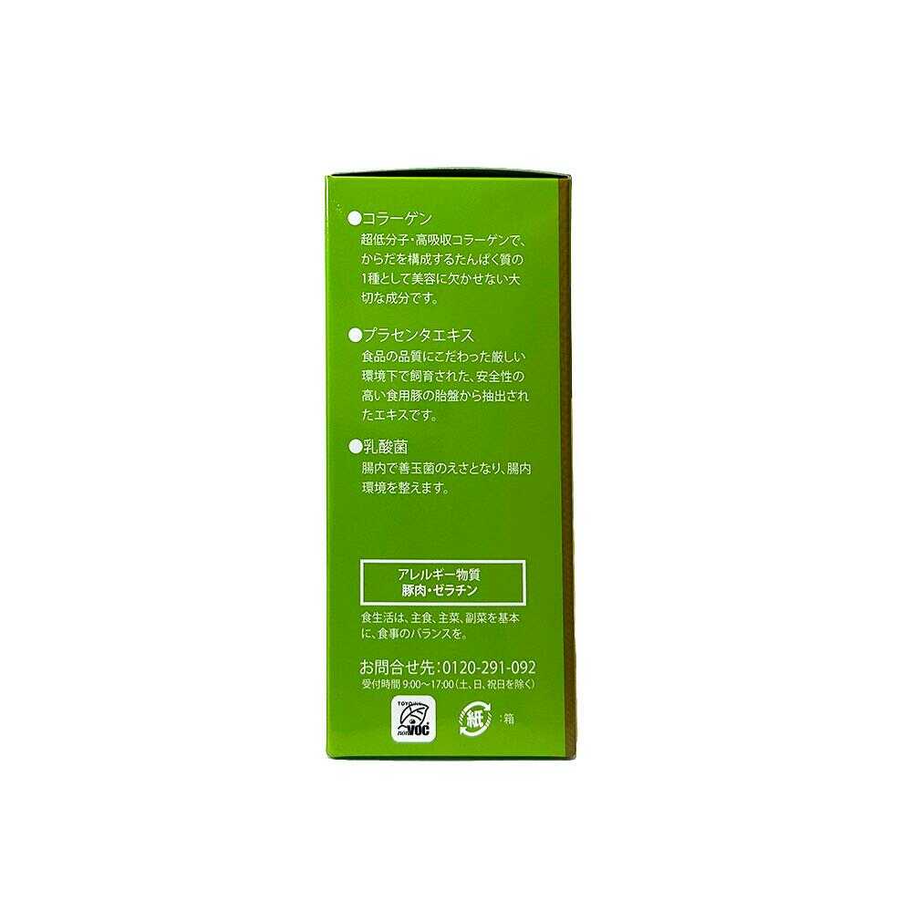 コラーゲン2500mg、プラセンタエキス4250mg、乳酸菌100億個。