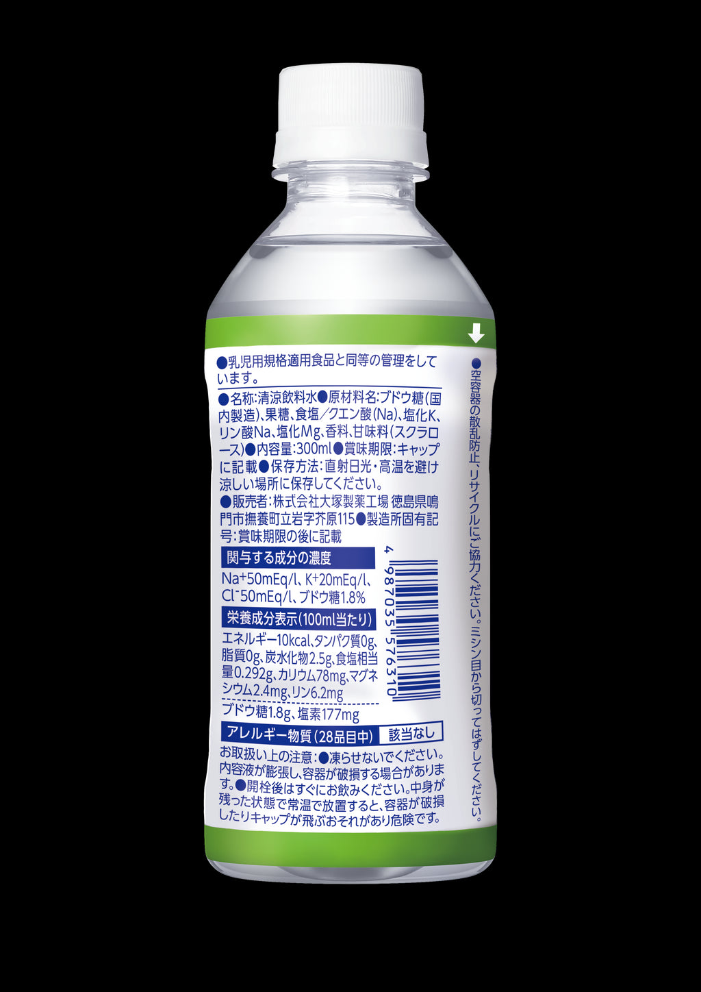 ブドウ糖(国内製造)、果糖、食塩/クエン酸(Na)、塩化K、リン酸Na、塩化Mg、香料、甘味料(スクラロース)