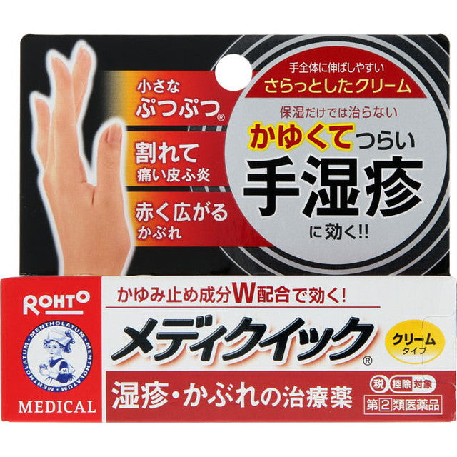 ■「メンソレータムメディクイッククリームR」は、かゆみや小さなぷつぷつ(水ぶくれ)など、手湿疹のつらい症状に効く治療薬です。
