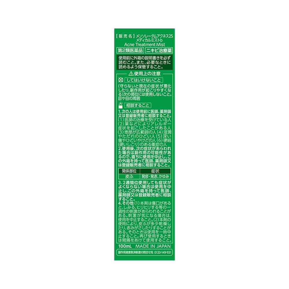 背中やデコルテで広がるニキビの元から効く、メンソレータムアクネス25メディカルミストb。