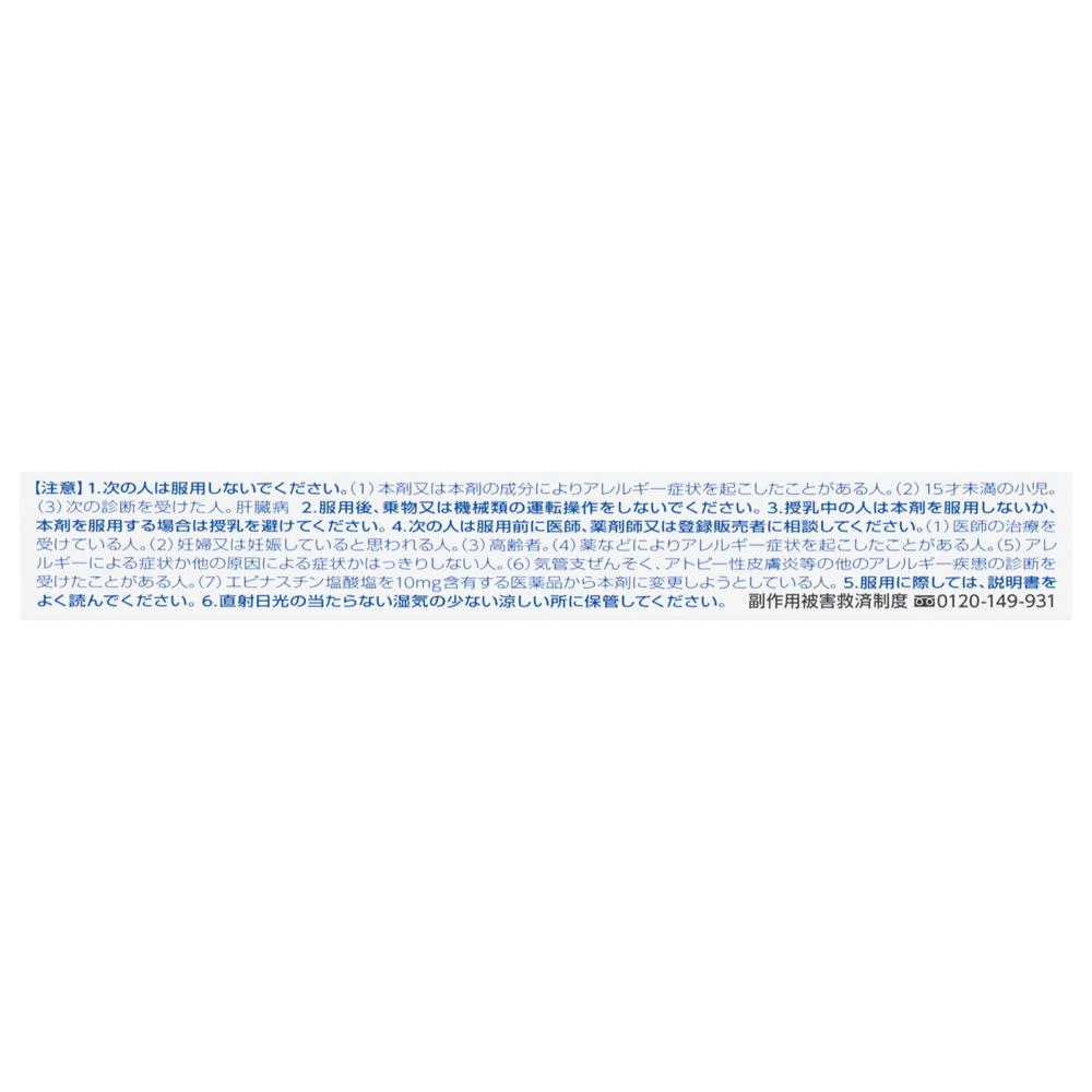 5.症状の改善が見られても2週間(他のエピナスチン塩酸塩を含有する医薬品の服用期間を含む)を超えて服用する場合は、医師、薬剤師又は登録販売者に相談してください