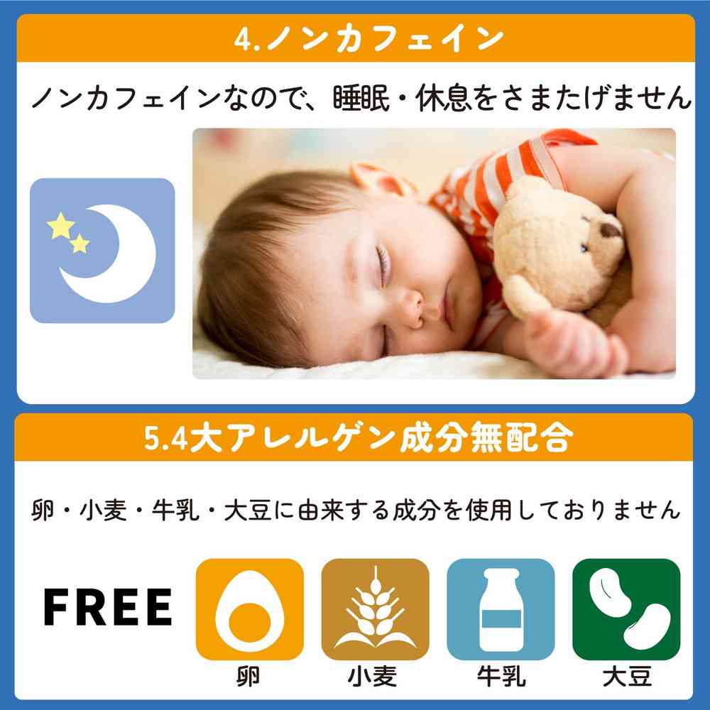 ●ノンカフェイン、4大アレルゲン(卵、牛乳、大豆、小麦)成分無配合。