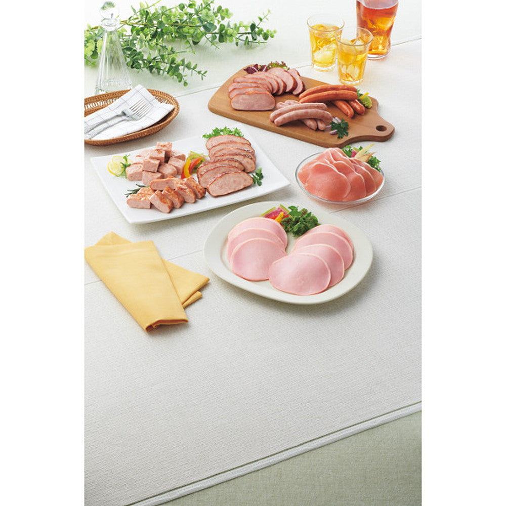 商品内容:●特選(ホワイトロースハム180g、あらびきヴルスト160g、二段加熱あらびきステーキ110g、あらびき燻しウインナー80g×2)、焼豚二段加熱仕立て160g