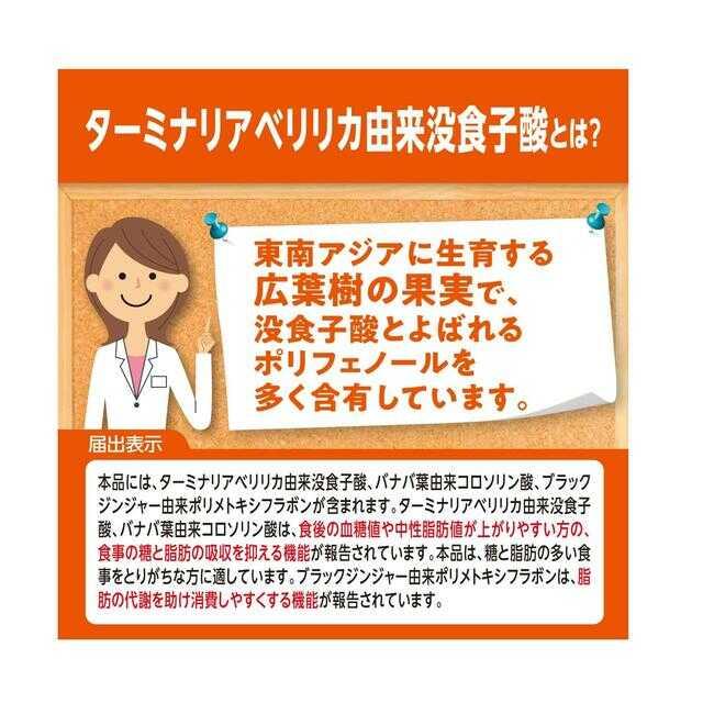 本品に含まれるターミナリアベリリカ由来没食子酸、バナバ葉由来コロソリン酸は、食後の血糖値や中性脂肪値が上がりやすい方の、食事の糖と脂肪の吸収を抑える機能が報告されています。