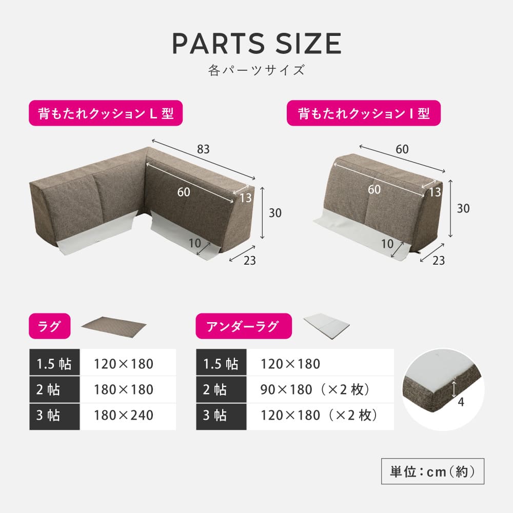置くだけでピタッと密着!敷くだけでズレにくい特殊構造を採用した「ピターら」シリーズのラグソファ。ラグ・アンダーラグ・背もたれクッションを組み合わせて、背もたれの位置を自由にかえられるから、目的や人数にあわせて、様々なシーンへ対応できます。カバーは外して洗えるので清潔さをキープできるのも嬉しいポイント。さらりとした肌触りの生地で、オールシーズン快適にお使いいただけます。