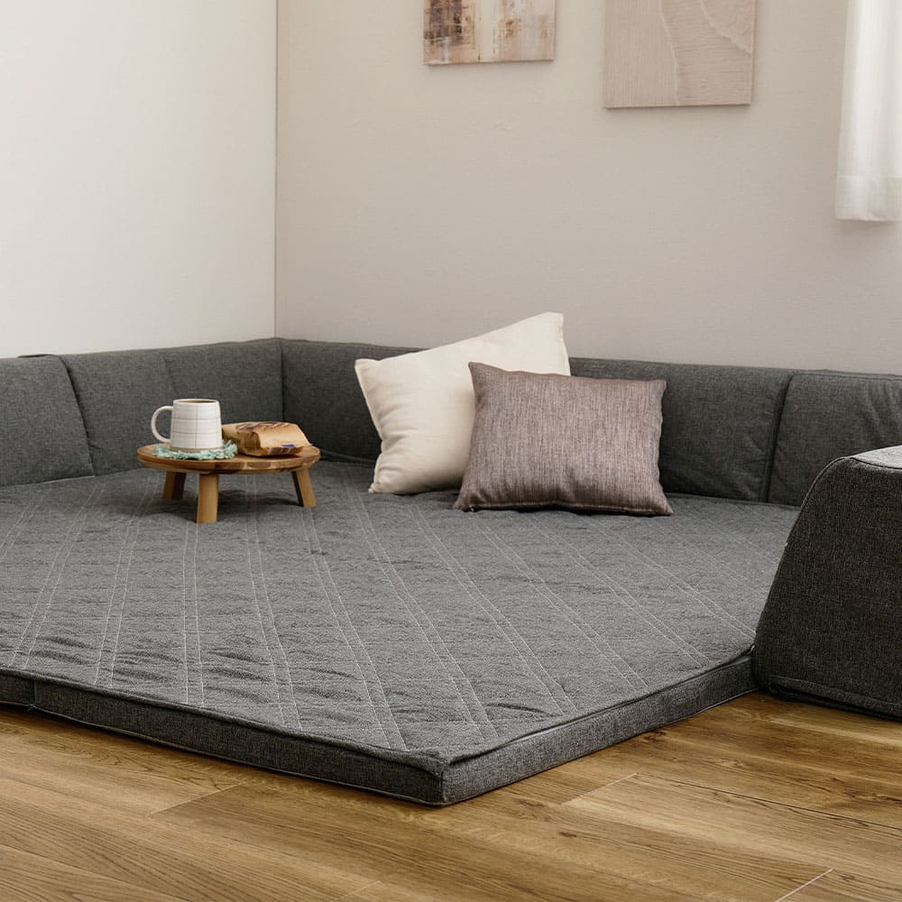 置くだけでピタッと密着!敷くだけでズレにくい特殊構造を採用した「ピターら」シリーズのラグソファ。ラグ・アンダーラグ・背もたれクッションを組み合わせて、背もたれの位置を自由にかえられるから、目的や人数にあわせて、様々なシーンへ対応できます。カバーは外して洗えるので清潔さをキープできるのも嬉しいポイント。さらりとした肌触りの生地で、オールシーズン快適にお使いいただけます。