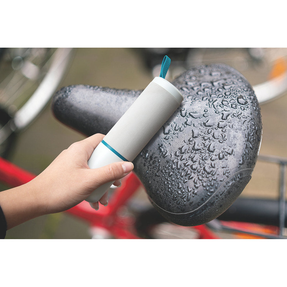 スティック型のタオルリュックなどに挿して携帯できるスティック型タオル。外出人水滴ストレスを解決します。水滴を瞬時に吸い取り、絞ることで吸水力が回復する吸水性・排水性に優れた素材を使用しているため、何度でも繰り返し使用できます。使用後も折りたたみは不要。リュックのサイドポケットなど、取り出しやすい箇所に挿して携帯することができます。【仕様】[耐熱温度]90℃