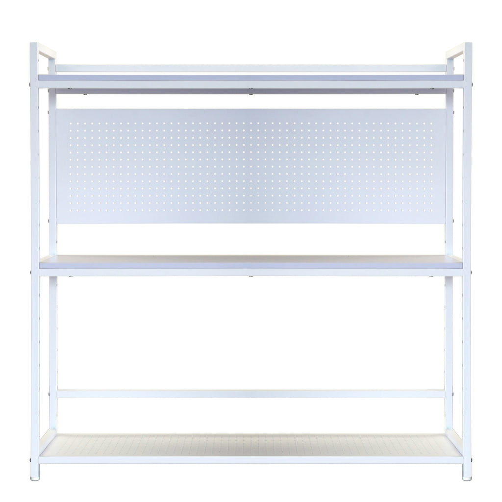 棚板を組み替えて、用途に合わせてラック・デスク・TVボードになるゲーミングラック。棚板は、18段階75mmピッチで高さ調節が可能。