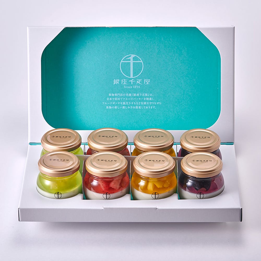 ●内容量マンゴー、ぶどう、メロン、ストロベリー 各2個 計8個※1個あたり約100g(蓋瓶の重量は含みません)