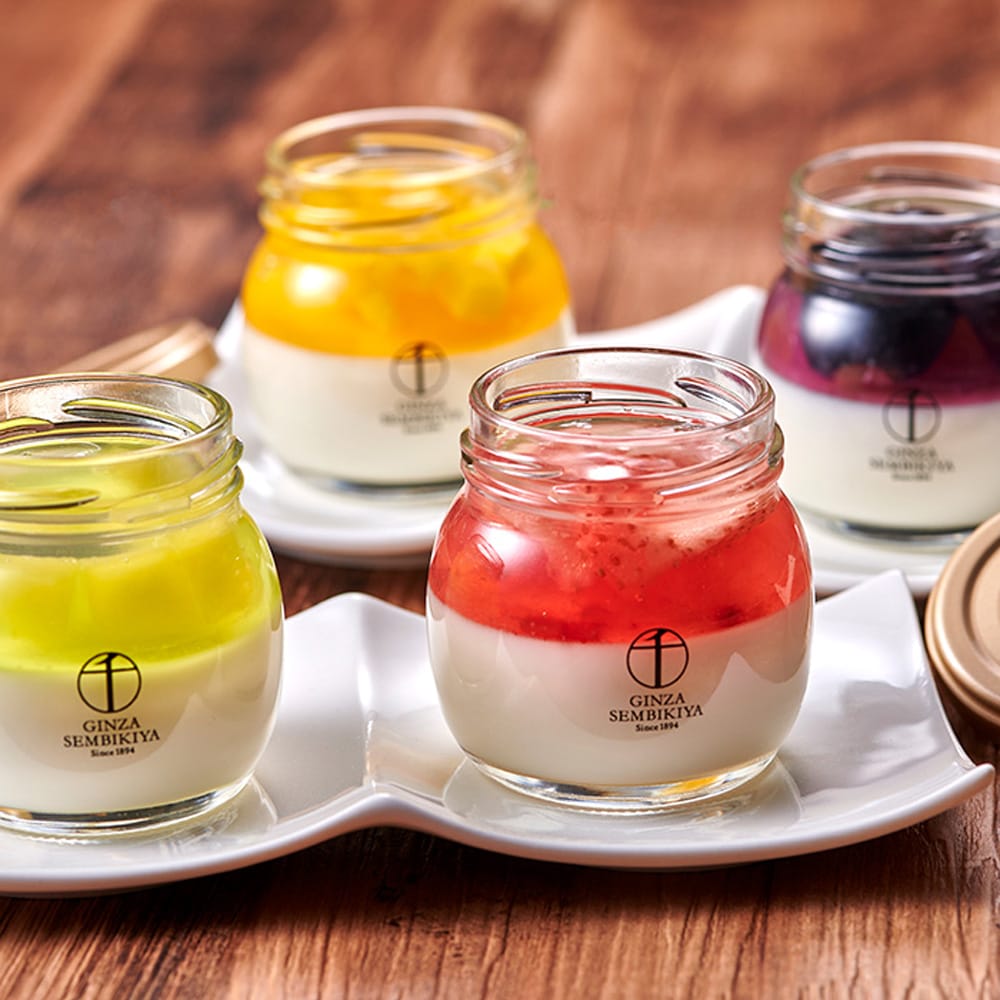 フレッシュな果物を使用した4種類のフルーツゼリーと口当たりなめらかな杏仁豆腐を瓶に閉じ込めました。いちご・マンゴー・メロン・ぶどうの果肉をトッピングした、見た目も楽しい彩り華やかなフルーツ杏仁をお楽しみください。