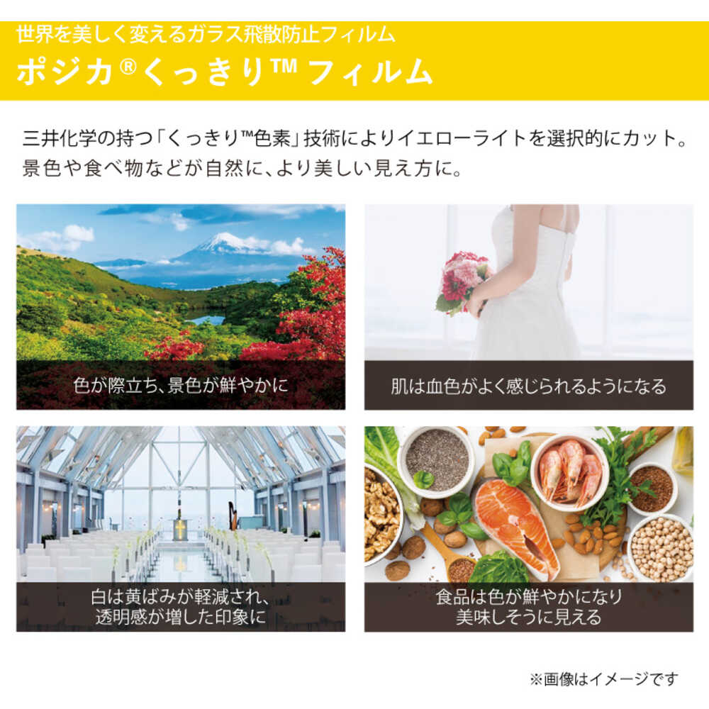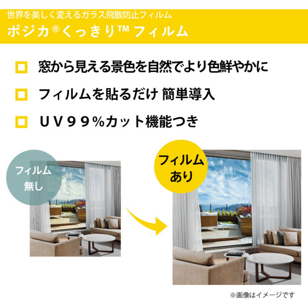 ●三井化学の「くっきり色素」技術を用いイエローライトを選択的にカットすることで、フィルム越しに見える景色を、自然な見え方ながら色鮮やかに見せるポリエステルベースのウインドウフィルムです。●災害時におけるガラスの飛散を防止し周囲の安全を確保します。(JIS A 5759適合)●紫外線を99%カットし、日焼けやインテリアの退色を抑制します。●表面のハードコート層により施工時や施工後の傷付きを軽減します。●国土交通大臣認定 不燃材料 認定番号 NM-3742取得しています。●色:中間色●幅(m):1.55●長さ(m):2●日射透過率:77.6%●日射反射率:7.6%●日射吸収率:14.8%●可視光線透過率:73.9%●可視光線反射率:7.3%●紫外線透過率:<1%●585nm(イエローライトの波長領域)分光透過率:44.8%●上記は実測値であり、保証値ではございません。●耐用年数:約10年(参考値であり、保証するものではございません) 質量420g