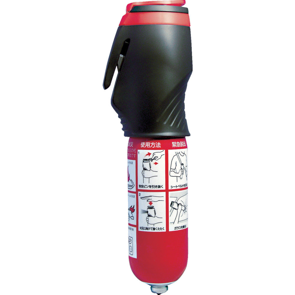●自動車の防災に必要な「消火用具」「ベルトカッター」「ガラス破砕器」の機能を全て凝縮しました。●薬剤は二酸化炭素なので、薬剤で車が汚れることがありません。●放射時間(秒):約8●高さ(mm):195 質量370g