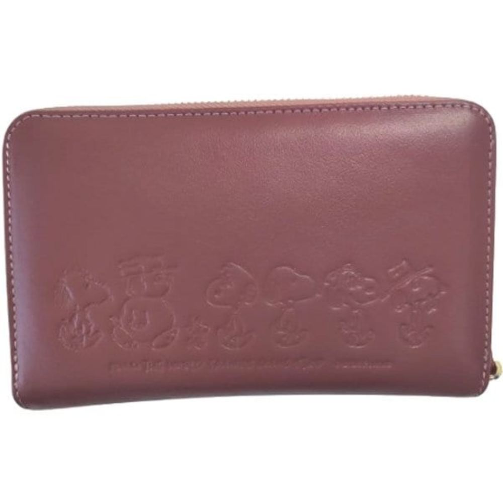 毎日をスヌーピーと一緒に過ごせる!かわいらしいデザインを落とし込んだ、日常で使える大人のための 本格的なレザー雑貨ブランド!スマホショルダーに長財布の機能をそのままプラス!表面はスヌーピーとウッドストックの型押し、裏面はにぎやかなブラザー柄です。ショルダーストラップは取り外しが可能なので、ポーチとして使用も可能。光沢のある牛革とゴールドの金具で上品なデザインです。