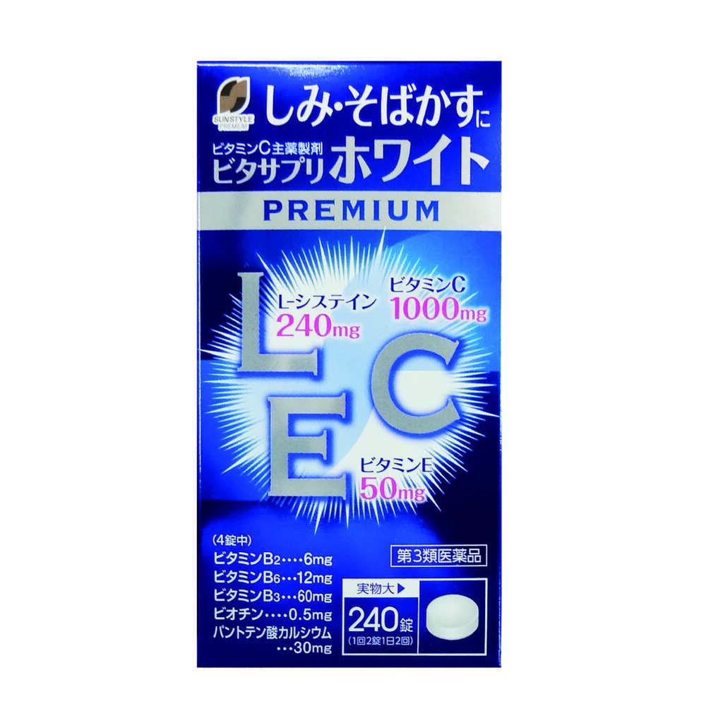 ビタサプリホワイトプレミアムは,しみ,そばかすの緩和にL-システインやビタミンCのほか,6種のビタミンを配合したビタミンC主薬製剤です。