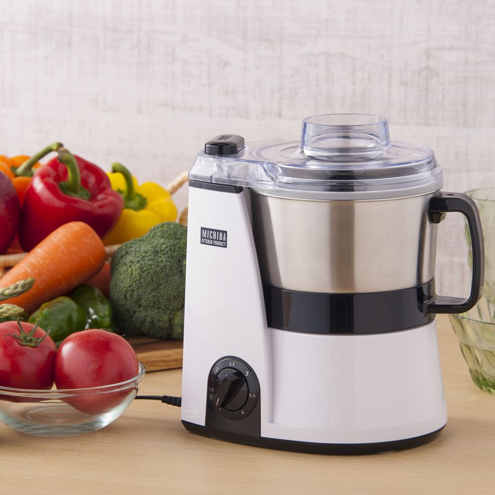 ■きざむ/まぜる/する/くだく/泡立てる/こねる(ブレード)/おろす(グレーター)/ひく/の1台8役