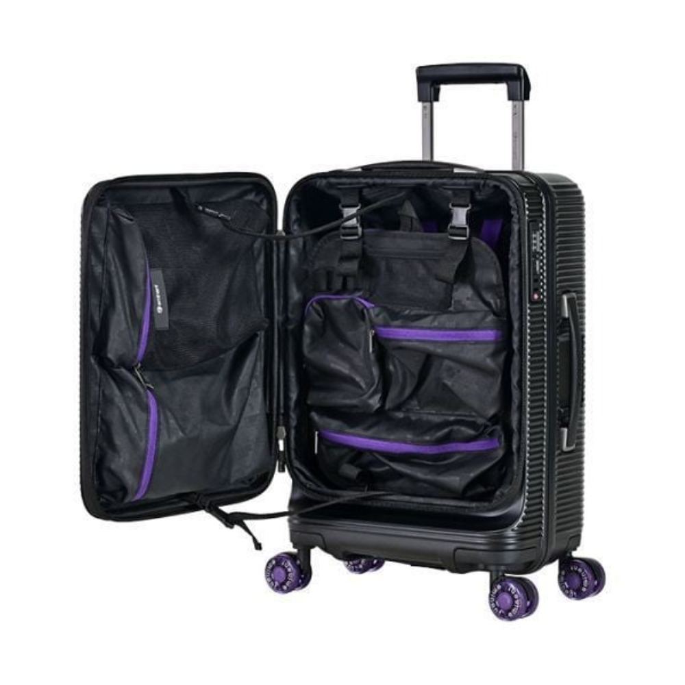 アウトドアを意識した拡張可能な多機能スーツケース。ショックアブソーバー付きキャスターを採用し移動もラクラク。取り外しできる収納で使い勝手も向上。TSAロック搭載で海外旅行も安心.TSAロック搭載で海外旅行も安心。収納比率1:9デザインにより、下部の収納スペースが深く、効率的に収納でき、空間を無駄にしません。防水収納袋と多層の収納スペースがあり、衣類、旅行用品、キャンプ用品を簡単に分類して収納できます。ショックアブソーバー付き360度回転キャスターで優れた衝撃吸収機能で引きやすさと静音性が向上。仕切り板は取り外し可能で、臨時の収納バスケットとしても使えます。最上部の2つの収納ポーチは取り外して持ち運びでき、使用の自由度が大幅にアップ。横向きに置くと、小さなテーブルに早変わり。飲み物や小物を軽く置けるようになり、テント設営や装備整理の合間にも便利です。正面には2つの円形のくぼみがあり、飲み物を置いても倒れる心配なし。背面には折りたたみ式カップホルダーがあり、飲み物や傘などを置けます。側面フック付きの足元収納で、提げバッグなどを掛けることができます。