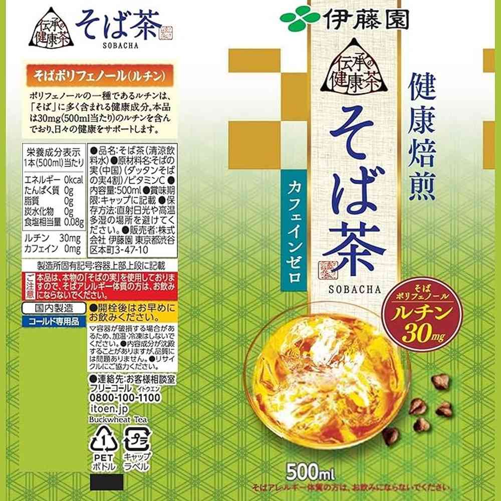 500ml当たり、たんぱく質(0g)、脂質(0g)、炭水化物(0g)、食塩相当量(0.08g)、ルチン(30mg)、カフェイン(0mg)