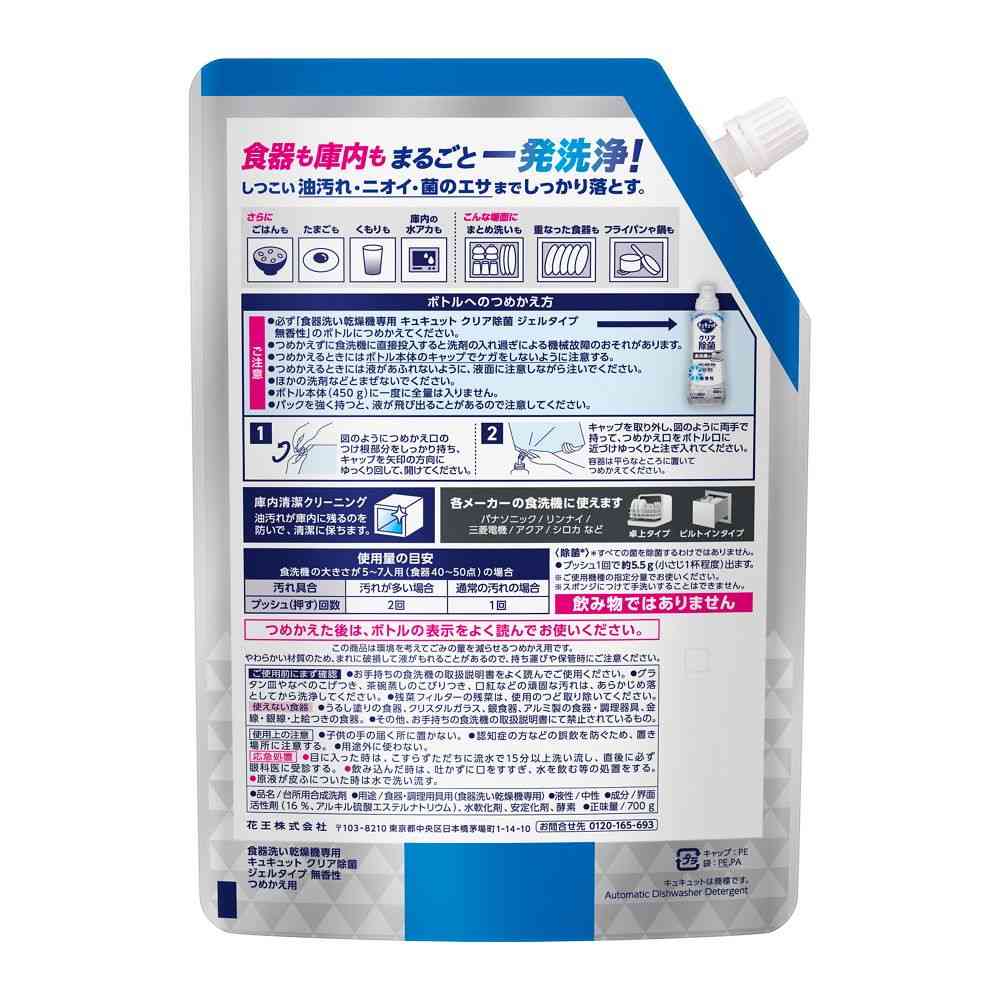 花王 食器洗い乾燥機専用 キュキュットクリア除菌 ジェルタイプ 無香性 詰め替え用 700g