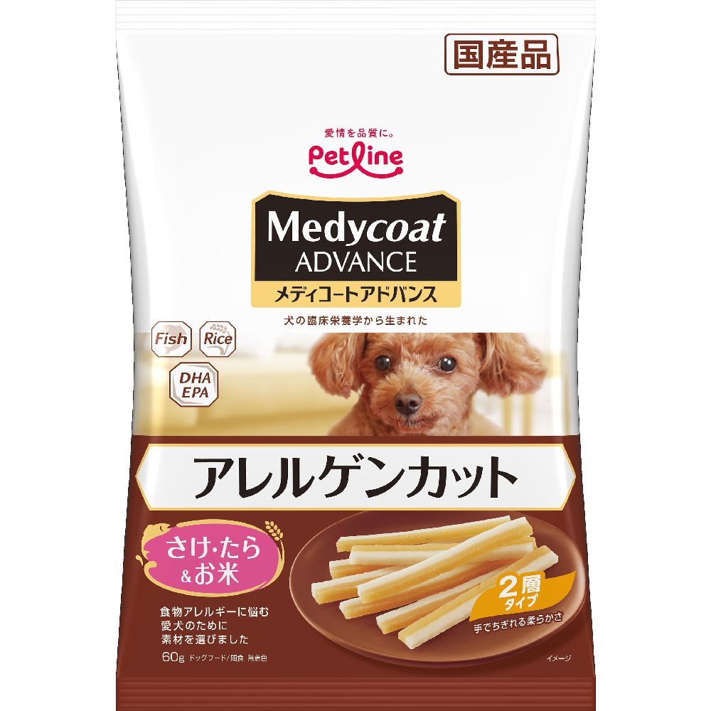 ペットライン メディコートアドバンス アレルゲンカットジャーキー サケ・タラ&お米 2層タイプ 60g