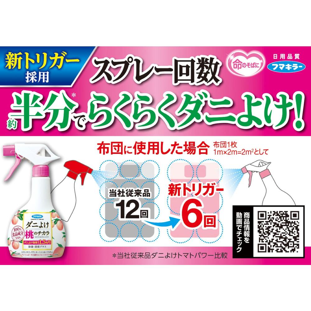 桃や茶にも含まれる成分「安息香酸ヘキシル」が、屋内塵性ダニに対して優れたダニよけ効果を発揮します。