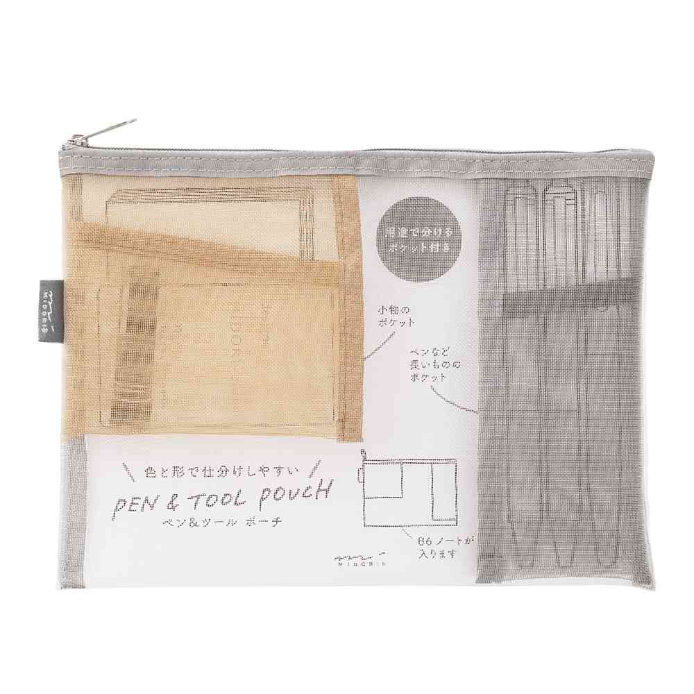色と形の違う2つの内ポケットがついたメッシュポーチです。