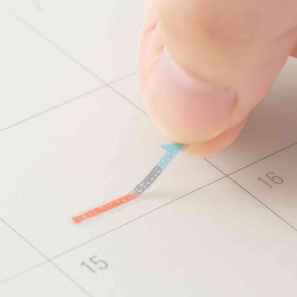 横にも縦にも貼れるので、月間ページ、週間ページ、どちらにもお使いいただけます。色鉛筆の手描きタッチが優しいデザインです。