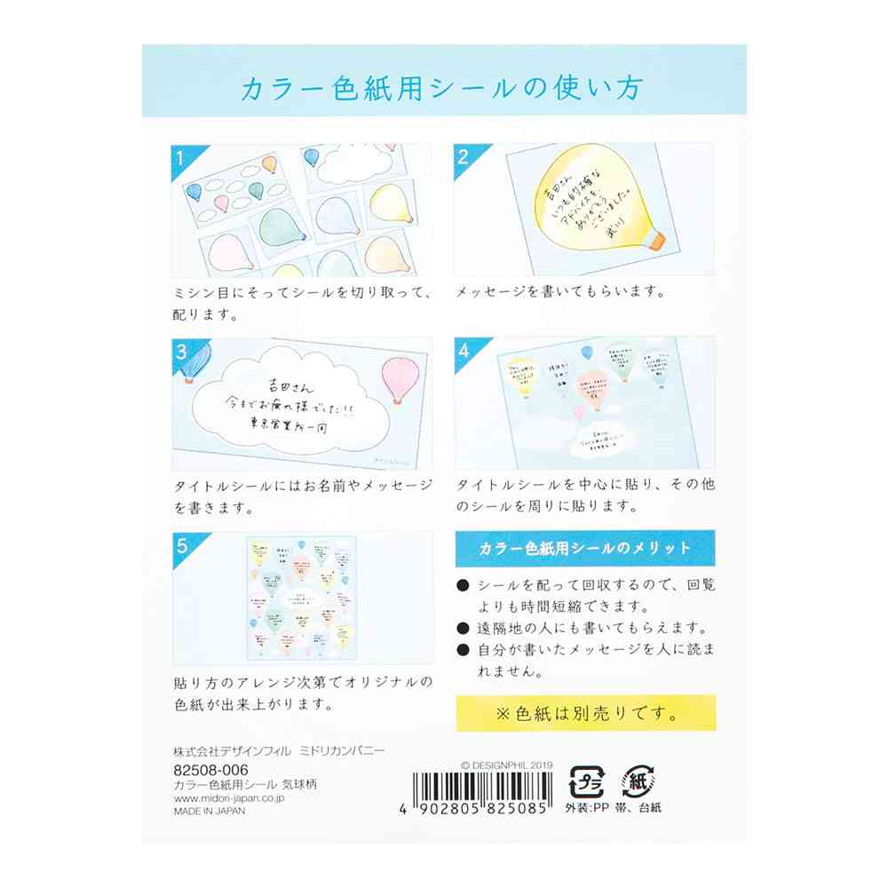 柔らかいタッチの気球に寄せ書きする色紙用シールです。