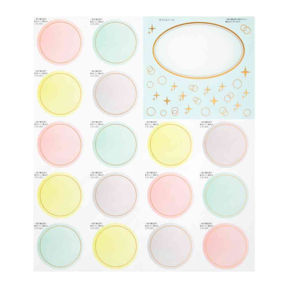 タイトルシール1枚と記入用半透明シール16枚入り。