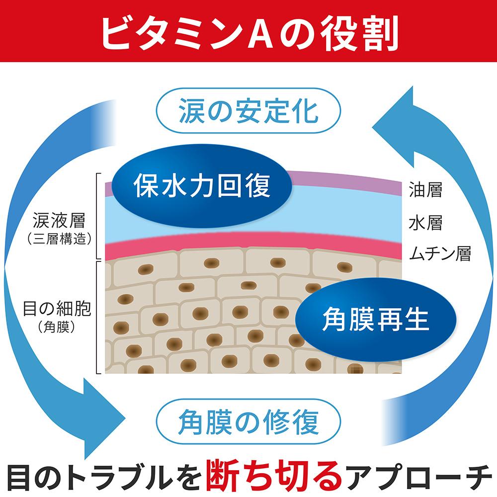 トリプルビタミン処方で、「目の疲れ」「目のかすみ」「充血」「かゆみ」に優れた効き目を発揮するマイルドなさし心地の目薬です。
