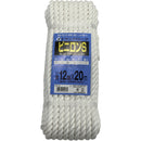 ●手触りが良く扱いやすい、耐候性、耐久性に優れた強度の強いロープです。●色:白●線径(mm):12●長さ(m):20●ロープの打ち方:3ツ打●引張強度(kN):9.80●包装形態:バンド掛巻●引張強度KN(kgf):9.8(1000) 質量1780g